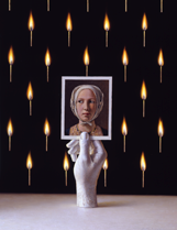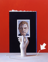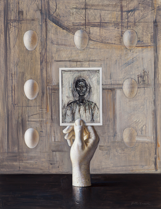 In 2007 I began a group of paintings I call the Icon Series. In each painting, a plaster cast of my hand is placed in a central position. All the works are the same size in order to maintain consistency. As you can see, the artists I have chosen to highlight are a diverse group, but each has a special resonance with me and my interest in art history.