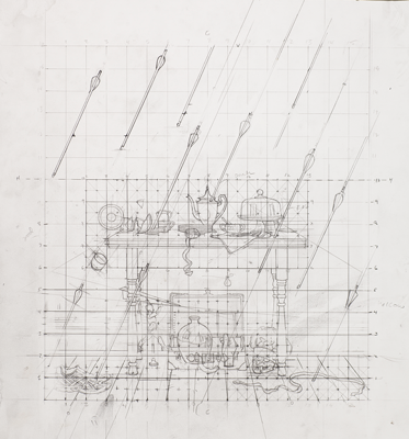 Reign | Grid pre-study #1 Graphite on paper | 17" x 16" Click here for enlarged image Return to Reign home page